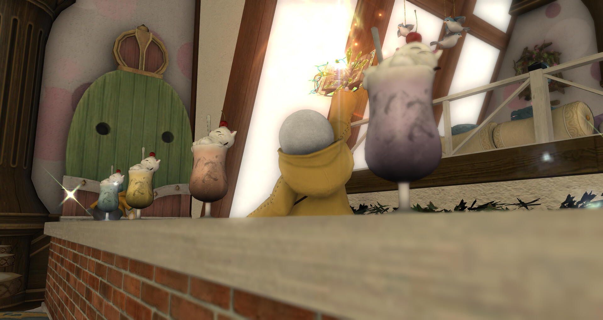 A tonberry showed up one day and, impressed by our decor and hospitality, asked if he could set up shop to share some tasty culinary treats of his own! He is now a part of our cute crew! See what he has available in the menu and come sit and chat with him today!